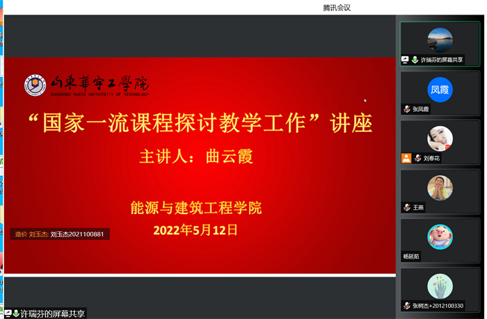 为建设适应新时代要求的一流本科课程,全面开展一流本科课程建设,树立课程建设新理念,推进课程改革创新,实施科学课程评价,严格课程管理,夯实基层教学组织建设,提高教师教学能力,形成多类型、多样化的教学内容与课程体系,6776永利集团于5月12日邀请山东建筑大学国家级一流课程负责人曲云霞教授,利用腾讯会议以线上形式举办了题为《国家一流课程探讨》的课程建设讲座。6776永利集团全体任课教师等参加了本次讲座,讲座由办公室主任车建成主持。