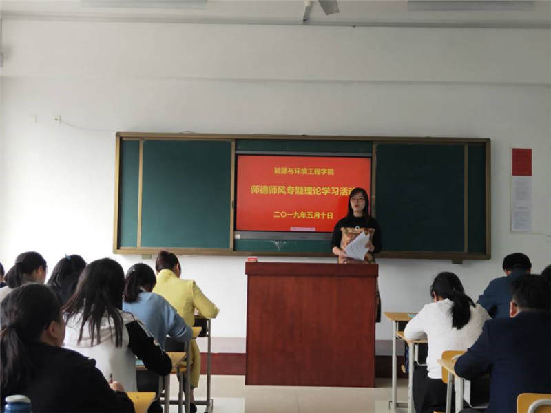 为深入贯彻习近平新时代中国特色社会主义思想和党的十九大精神,落实全国教育大会精神和《新时代高校教师职业行为十项准则》等文件精神,能源与环境工程学院于2019年5月10下午,在21号楼501室召开了师德师风专题理论学习动员大会。会议由学院院长魏丰君主持,全体教职工参加并集中学习了《教育部关于建立健全高校师德建设长效机制的意见》《新时代高校教师职业行为十项准则》和《教育部关于高校教师师德失范行为处理的指导意见》三个文件内容。
