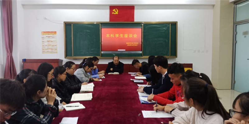 座谈会上,学生代表踊跃发言,详细的表述了班级同学想要解决和关注的问题。诸如专业课的学习问题、考研、考证、就业以及生活方面的问题。在交流过程中,院长张风合和老师代表有针对性的进行了解答,特别是教师授课问题,提出以班级为单位将问题汇总并及时反馈给任课教师,以免小问题的堆积造成大问题,影响学生的学习效果。