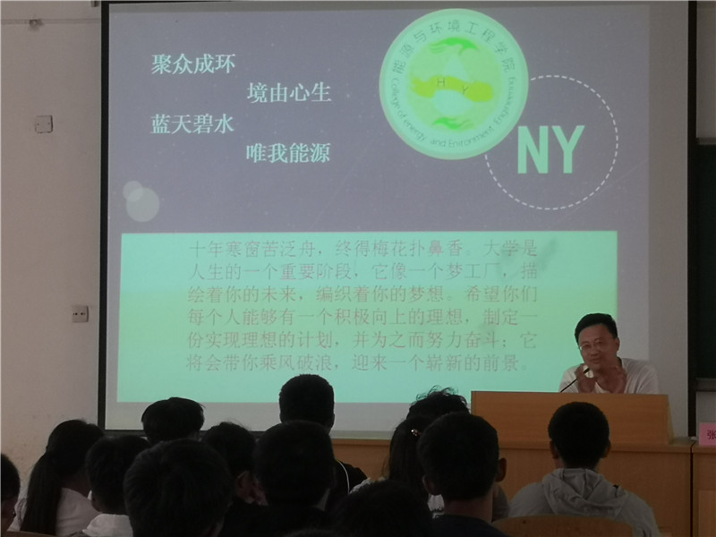 2018年9月10日,14号教学楼201教室座无虚席,能源与环境工程学院举办了2018级新生《开学第一课》。本次讲座分为两场,分别由学院院长张风合、学管院长闫克信担任主讲人,辅导员姜立波老师、宋成立老师和2018级全体新生参加了此次讲座。