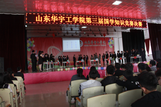 中华文化渊源流长,在五千年历史长河中,名篇佳赋,灿若星河,大浪淘沙,留下一部又一部闪烁着光辉思想和深远智慧的篇章,这些经典已经成为中华民族赖以生存的精神宝藏!为弘扬国学精粹,在大学中掀起“国学热”,呼唤人文精神。2017年4月25日下午,山东华宇工学院学院第三届国学知识竞赛决赛在大学生活动中心如期举行。本次活动由共青团山东华宇工学院委员会主办,机械工程学院承办,以“品鉴经典,传承文明”为主题。