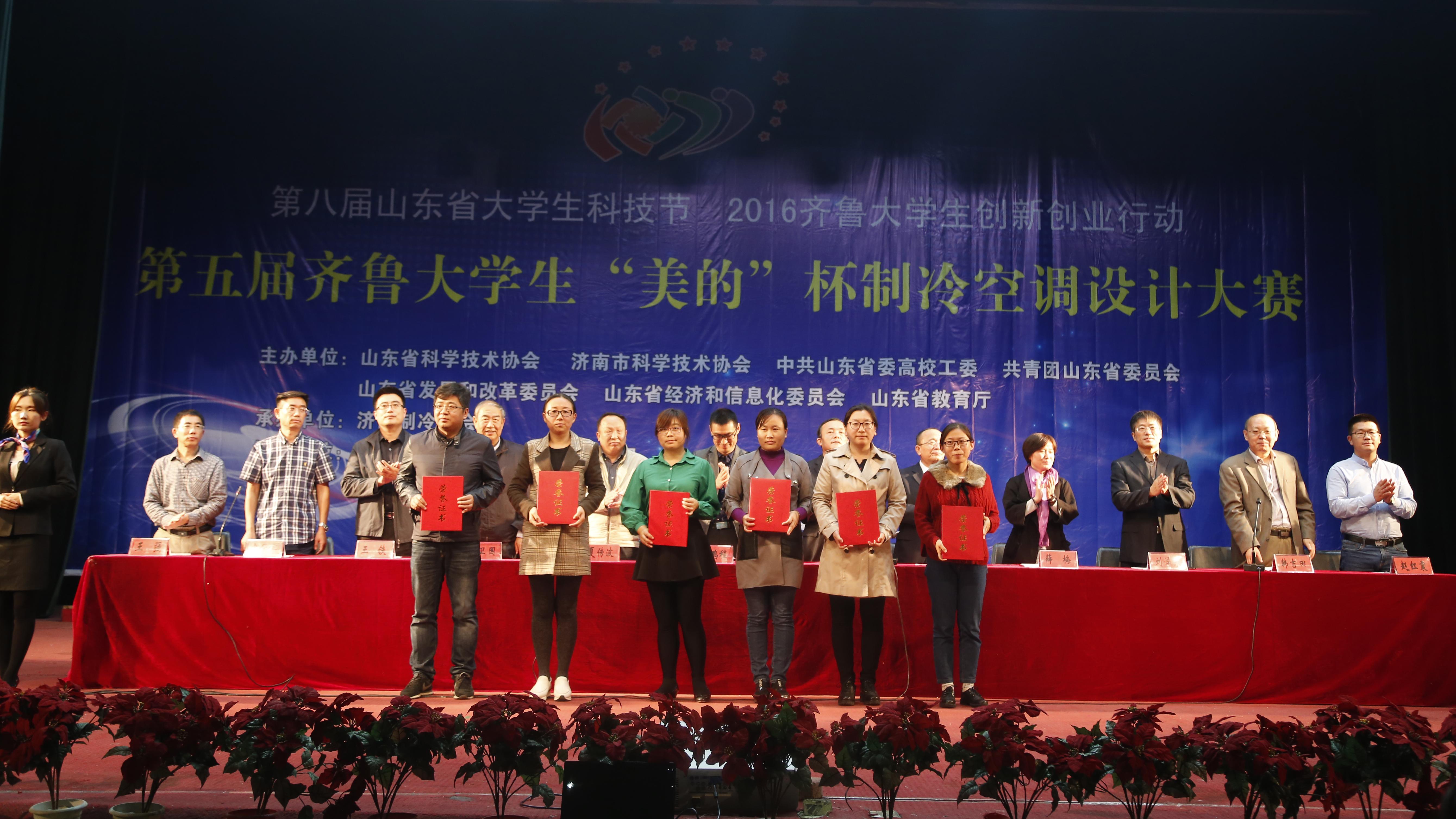 10月20日,第八届山东省大学生科技节暨第五届齐鲁大学生“美的”杯制冷空调设计应用大赛颁奖典礼在我校隆重举行。能源与环境工程学院的3个设计作品经过层层选拔,入围决赛并获得一等奖、三等奖、优秀奖各1名,刘春花、张妍妍、相培等老师获得优秀指导教师奖。同时,我院因参与积极,作品质量较高,颁奖典礼组织得当,被大赛组委会授予优秀组织奖。