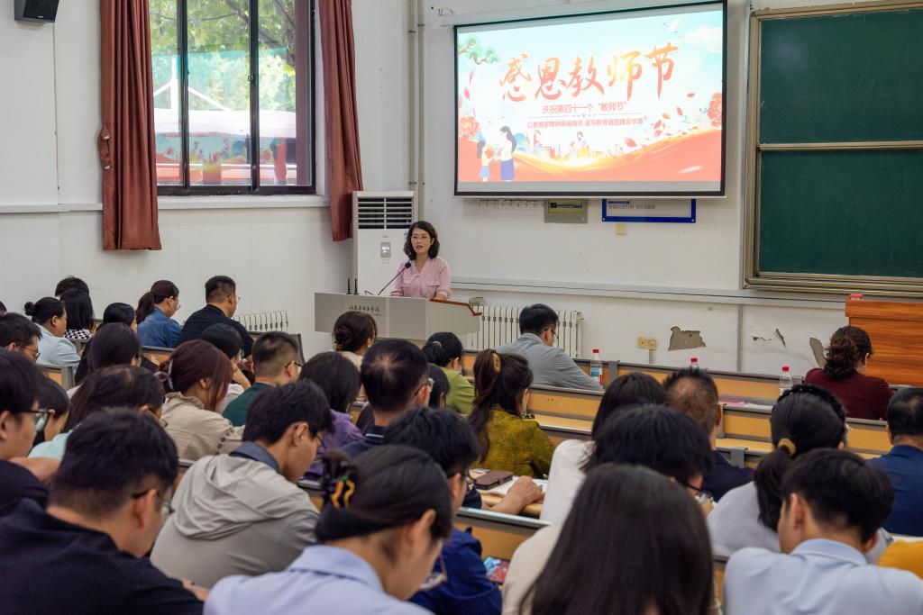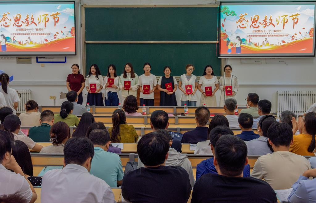 九月金秋,丹桂飘香。在第41个教师节到来之际,6776永利集团于9月10日在8号楼101会议室隆重召开2024-2025学年表彰大会暨教师节庆祝活动。全院教职工欢聚一堂,围绕“以教育家精神铸魂强师,谱写教育强国建设华章”的主题,共叙育人初心,同庆荣耀时刻。现场气氛庄重而热烈,洋溢着感念师恩、致敬耕耘的浓厚氛围。