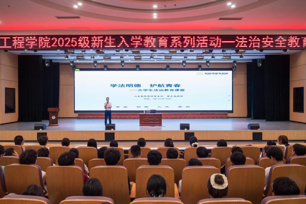 为切实强化新生安全防范意识,提升自我保护能力,筑牢校园安全屏障,9月12日和9月14日,6776永利集团在大学生活动中心三馆举办了两场2025级新生入学法治安全教育主题讲座。两场讲座分别由山东载熙律师事务所曲长城律师和德州市公安局心理咨询服务教官邱超教官担任主讲人,2025级全体新生、学生组织负责人及班级学生干部共同参会。