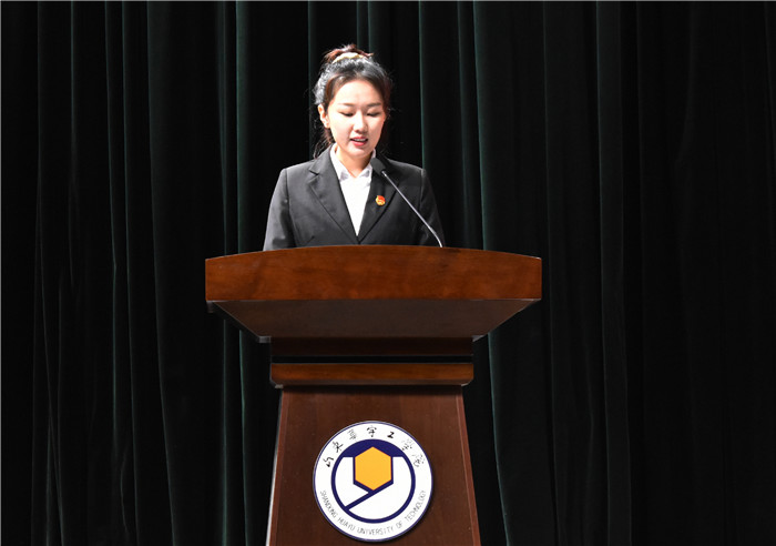 学管干事任秋燕宣读了《关于表彰2020年安全工作先进班集体和先进个人的决定》,与会领导、老师为受表彰的11个集体和41名先进个人颁发了奖状和荣誉证书。辅导员代表李玲玉和学生代表李佳盈分别发言,面向师生发出“牢守安全底线,紧筑安全防线;加强责任意识,构建和谐校园”的安全倡议。会上,辅导员老师与魏丰君院长双方签署安全工作目标责任书。