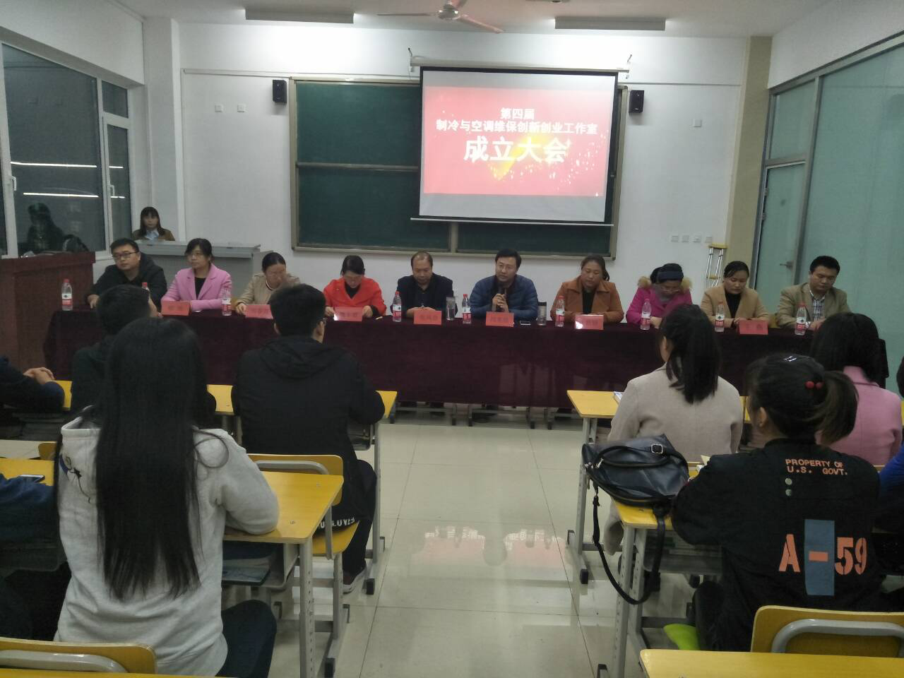 2017年10月31日,在21号楼706教室召开了能源与环境工程学院第四届制冷与空调维保创新创业工作室成立大会。出席本次会议的领导有能源与环境工程学院院长张风合、教学院长魏丰君、学管院长闫克信、实验实训中心主任张妍妍、指导老师刘春花、学管科长赵立艳、教学科长王燕、制冷教研室主任相培、辅导员老师宋成立和姜立波。