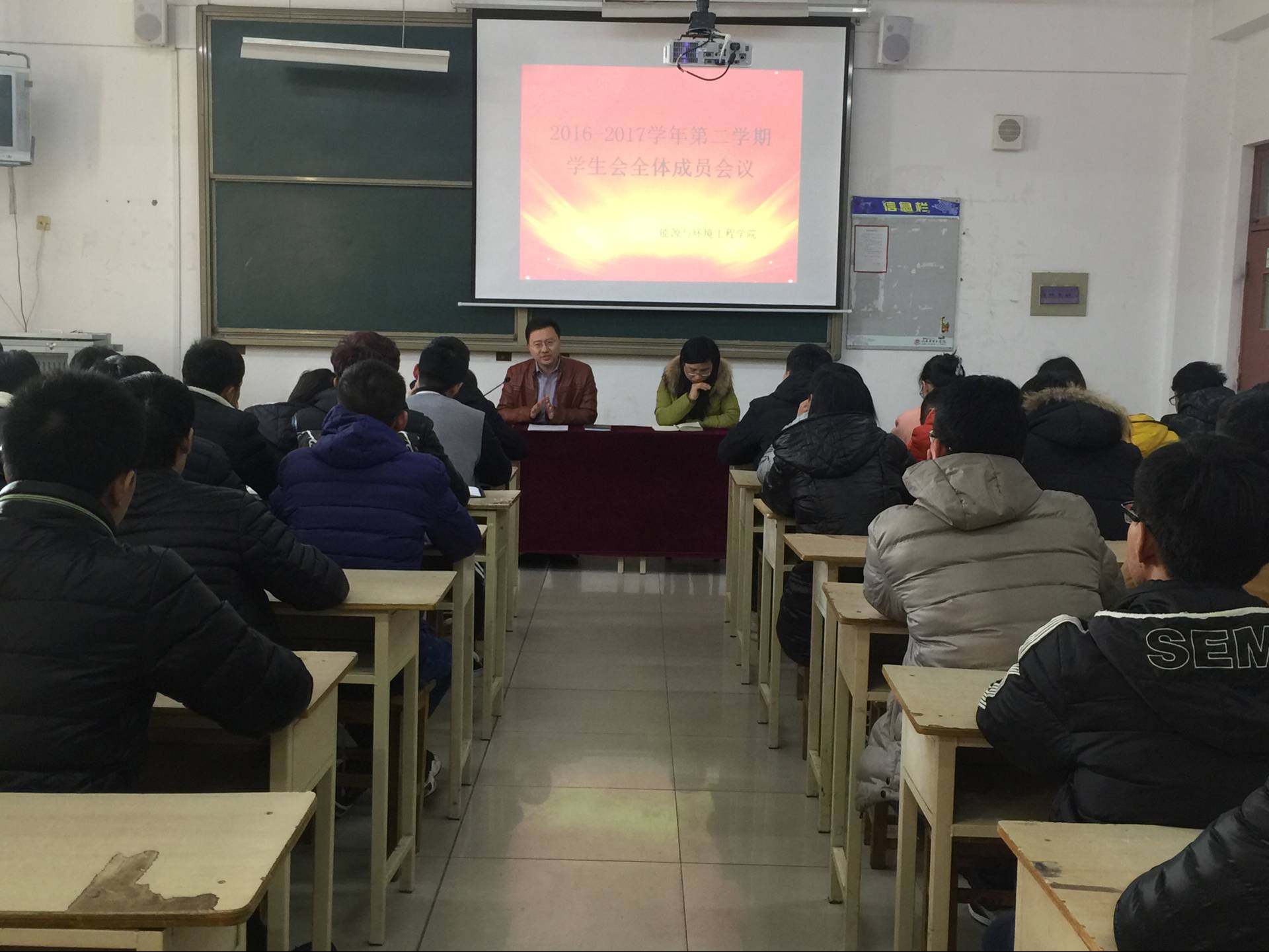2月23日,能源与环境工程学院在10号楼603召开新学期学生会全体成员大会。能源与环境工程学院副院长闫克信、学生管理科科长赵立艳及学生会全体成员参加了此次大会。