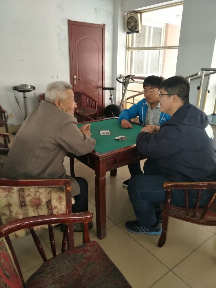 到达目的地后,福利中心李主任接待了我们。在简单沟通后,在李主任的带领下看望了福利中心的老人,同学们与老人们彼此间相处非常融洽,谈话场面毫无距离感,场面其乐融融。有的同老人打打牌解解闷,有的照顾身体行动不便的老人户外晒晒太阳。在这时,福利中心来了几车农家肥料,还没等说话,在姜老师的带领下,男同学们不约而同地齐上手,拿起工具帮老人们施肥,大爷大妈们给我们又是送水又是倒茶的,还跟我们一起聊天,老人心疼同学们,生怕累坏了大家,让同学们也休息休息。同学们心想:必须按时做完临时任务,不把活再留给敬老院的老人们。施肥任务很快完成了,大家忙的热火朝天,但是时间到了我们也该走了。临行前,老人们高兴地与我们一同合照,千叮咛万嘱咐地说:“要努力学习,不要辜负父母的希望”。