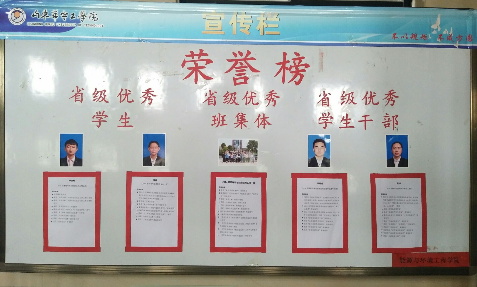 根据省教育厅下发(鲁教学字[2017]5号)《山东省教育厅关于公布2016年度高等学校优秀学生、优秀学生干部和先进班评选结果的通知》,能源学院2名学生获得省级优秀学生干部,1名学生获得省级优秀学生,2014级本科建筑环境与能源应用工程专业1班获得省级优秀班集体。