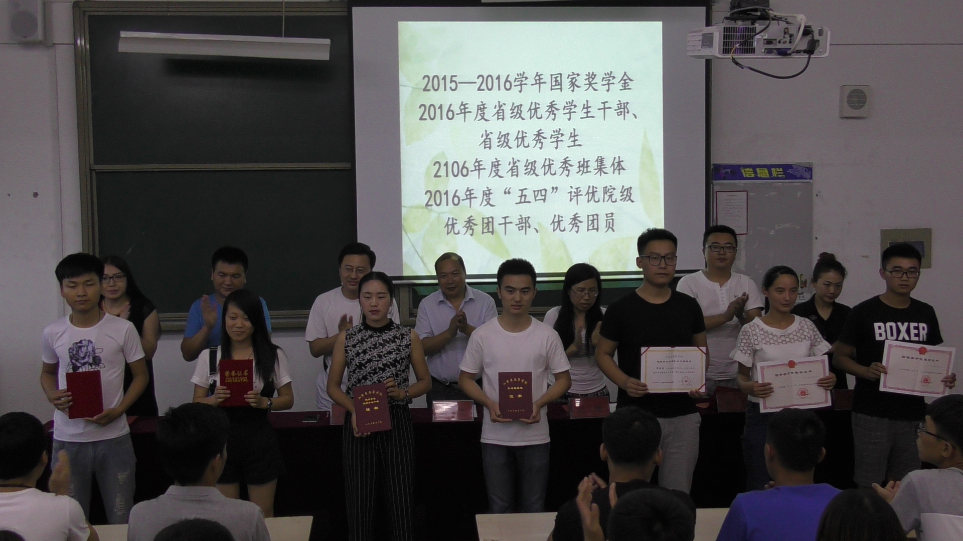 会议还对获得2015-2016学年国家奖学金,2016学年省级优秀学生干部、2016学年省级优秀学生、2016学年省级优秀班集体荣誉称号的先进集体和个人进行了颁奖。