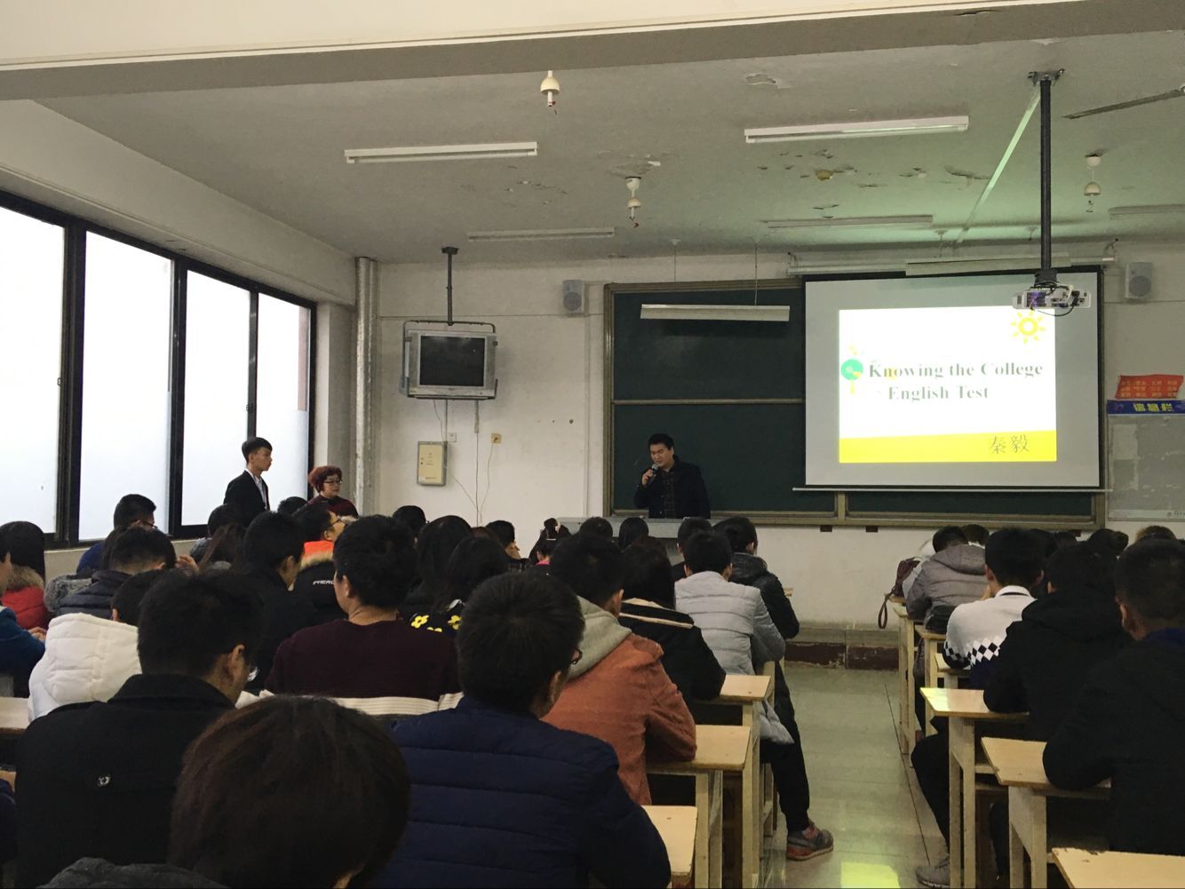 为充分调动学生学习英语的积极性,加强我院学风建设,提高学生备战英语四级的积极性。11月21日,能源与环境工程学院在10#603举办大学英语四级讲座。讲座特邀基础部英语教研室秦毅老师主讲。