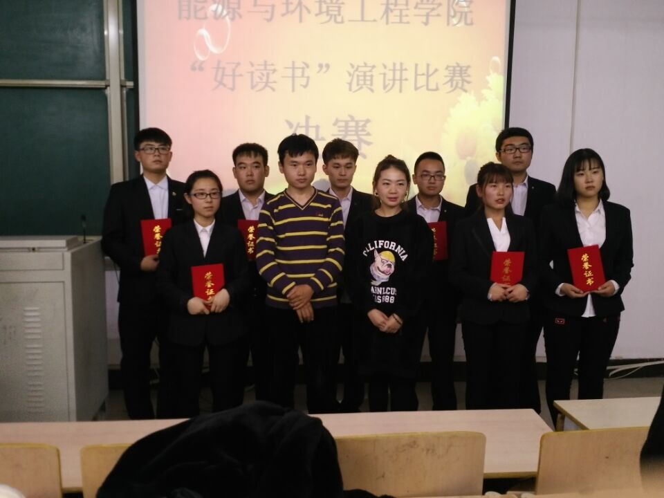 为了提高学生的读书热情,培养学生好读书,读好书的习惯,11月21日,能源与环境工程学院在10号楼602举办“好读书”演讲比赛。学院王琳老师、满志川老师及学生会主席担任此次比赛评委,2016级部分学生代表参加了此次演讲比赛。