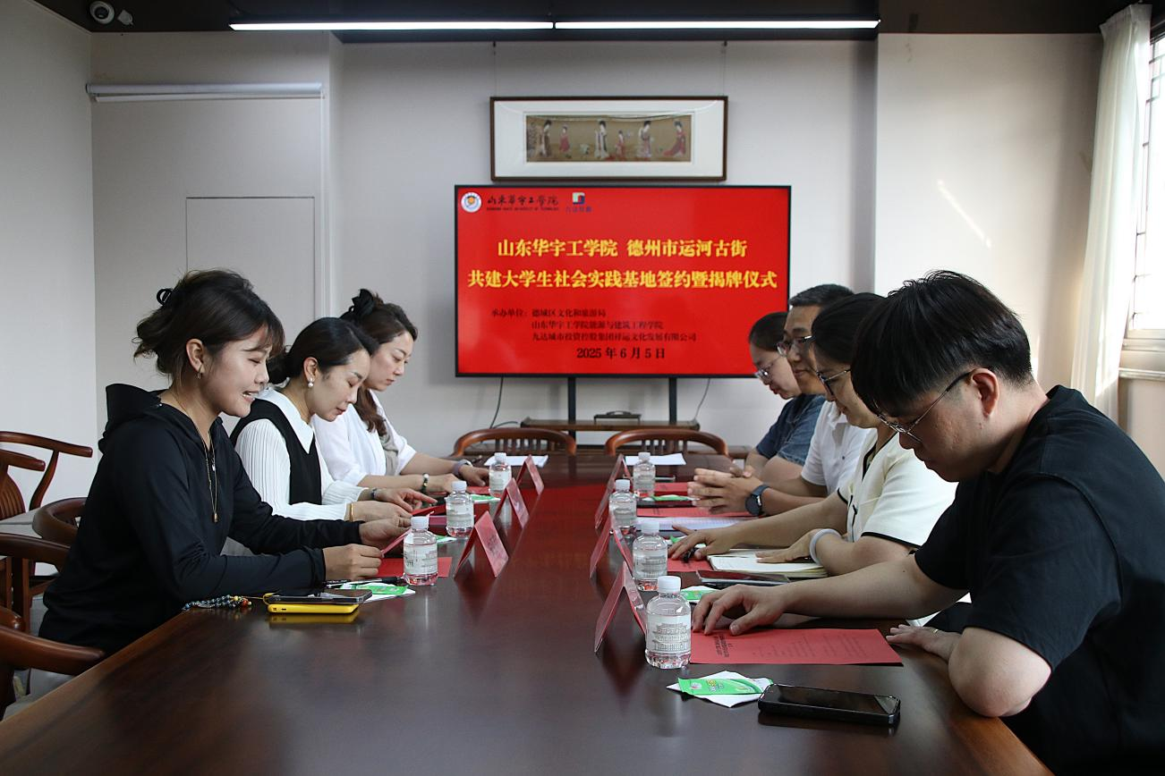 2025年6月5日下午,山东华宇工学院6776永利集团与德州祥运文化发展有限公司共建大学生社会实践基地签约揭牌仪式在运河古街举行。德城区文旅局党组成员、副局长张璐,德州祥运文化发展有限公司总经理周玮,山东华宇工学院6776永利集团党总支书记刘占凯、团总支书记任秋燕及师生代表共同参与,推动传统文化教育与实践深度融合。