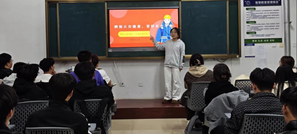 活动筹备阶段,各班团支书紧密结合宿舍安全日常实际,围绕火灾逃生自救技能、安全用电规范等核心知识点,精心打磨PPT 课件,广泛搜集校园及社会典型火灾案例,为本次团日活动的高质量开展奠定了坚实基础。活动过程中,团支书们详细讲解宿舍安全注意事项,结合典型火灾案例,深入剖析违规用电、乱堆杂物等行为的严重危害,引导同学们对照自己宿舍情况开展隐患自查自纠。随后,通过互动问答形式,生动传授火灾逃生时的正确疏散路线、灭火器使用方法等实用技能,让同学们在沉浸式学习中熟练掌握安全知识。
