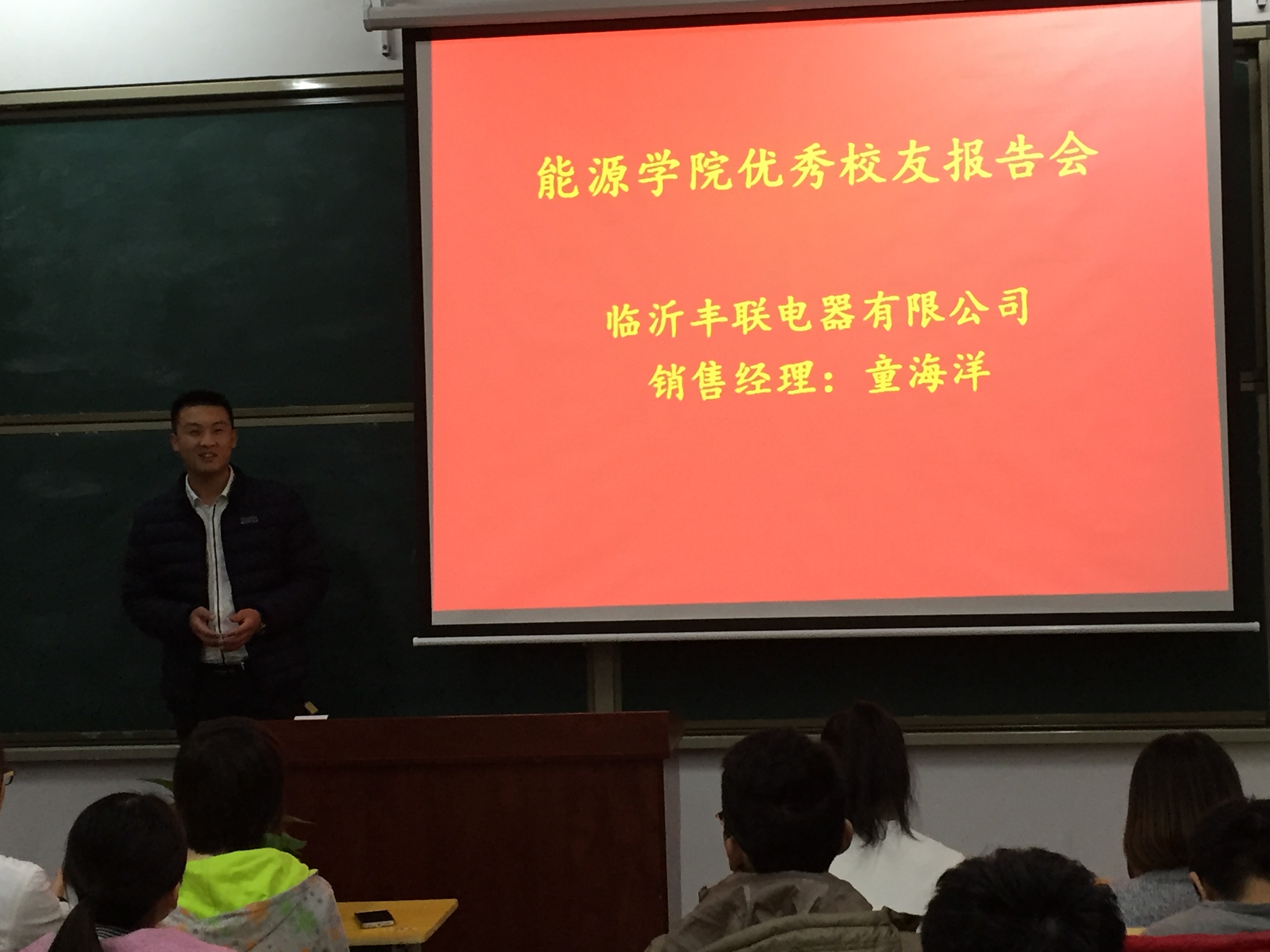 报告会结束后,童海洋经理代表临沂丰联电器有限公司做了招聘宣讲,希望同学们加入公司,共同发展。经过宣讲、报名、初试、复试后,最终成功录取了九名同学。(撰稿人:姜立波)