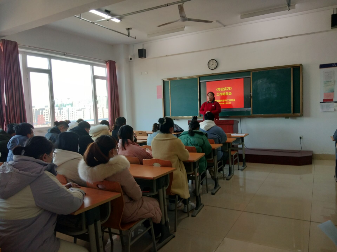 新能源科学与工程专业负责人张妍妍就开展好2022届毕业生毕业实习工作作了动员讲话。她指出,毕业实习是学生对所学知识进行检验,并积累初步工作经验的重要学习环节,希望同学们能够以积极认真的态度参加实习,她还用王国维“成事的三个境界”勉励毕业生,让自己未来的人生道路能够“步步为赢”。而后,张老师将实习过程中的注意事项和实习要求以ppt的形式直观的予以解释和说明,并进一步明确了整个实习过程中指导教师和学生各自的职责。