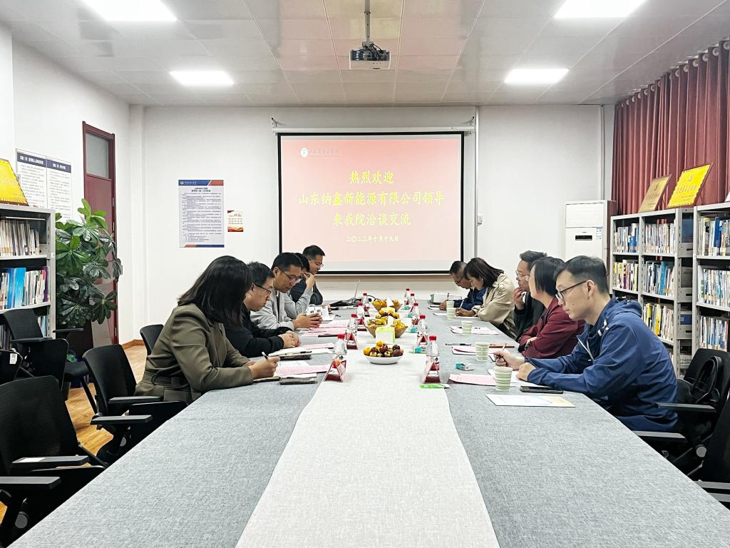 山东纳鑫新能源有限公司销售总监王蕾对公司的发展历程、公司规模、主要经营范围以及发展规划进行了详细介绍,副总经理花玉祥对学校及学院的规模、教学条件、人才培养、校企合作等方面给予了高度评价,表达了希望校企双方在人才共育、人才就业、资源共享、项目共研等方面进行深度合作的期许。
