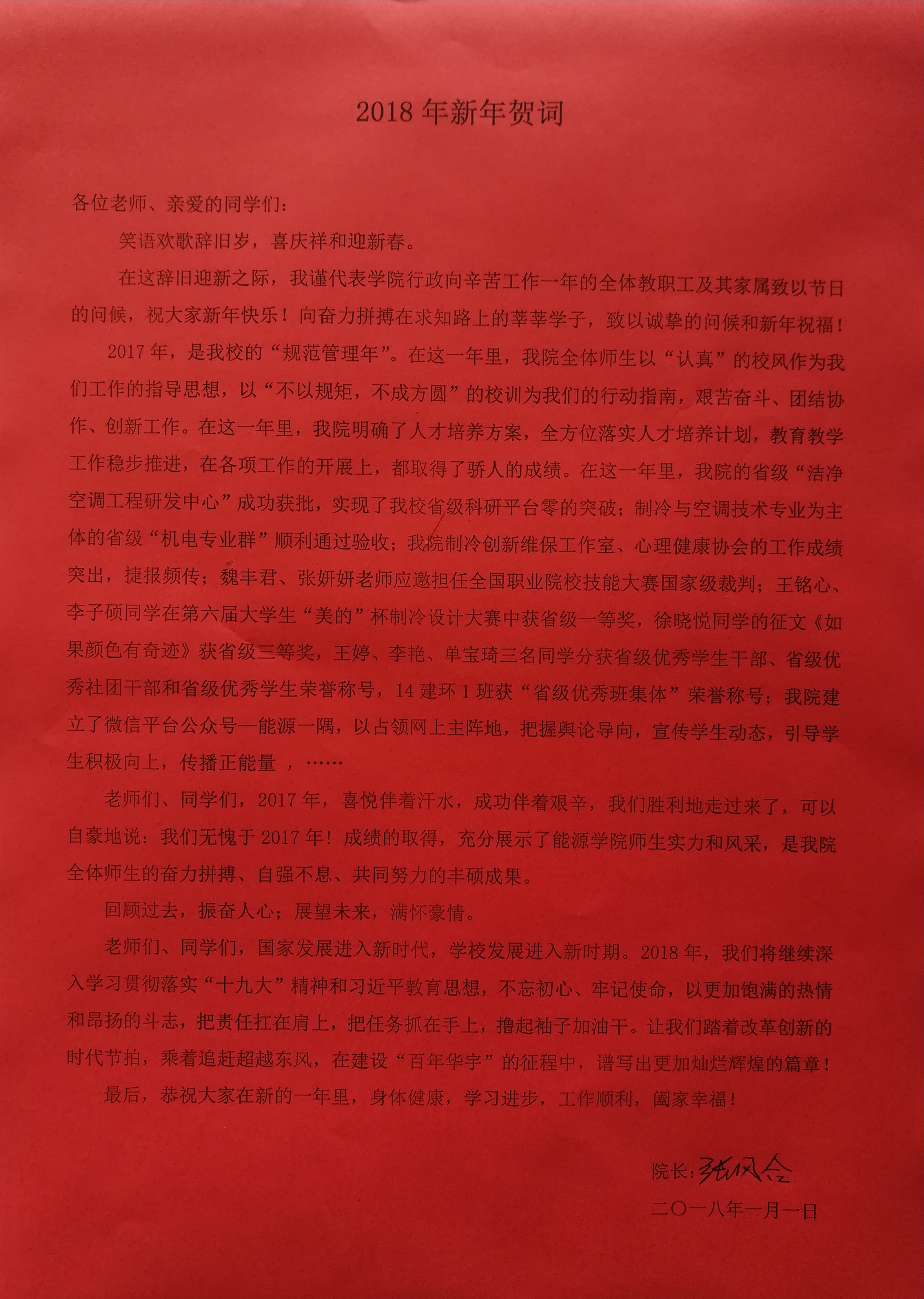 张院长2018年新年贺词