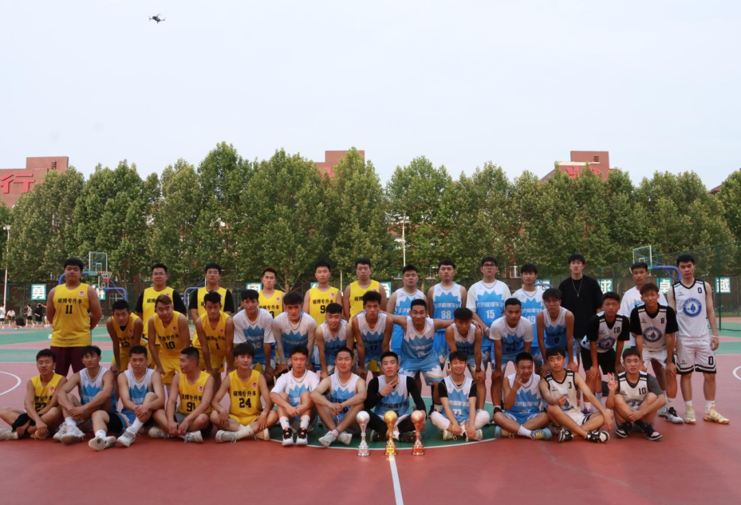 山东华宇工学院第七届大学生篮球联赛前三名颁发奖杯。