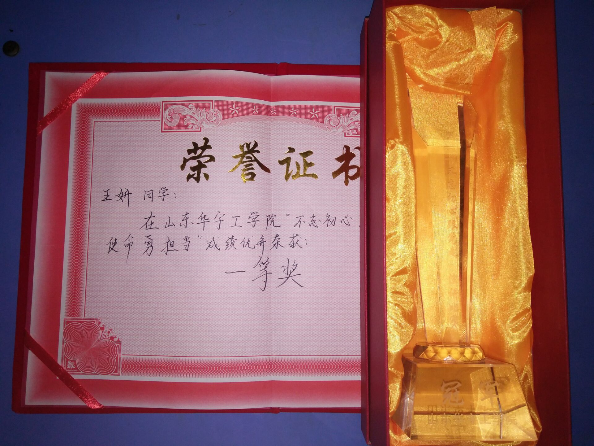 王妍同学在11月21日我院举办的主题演讲选拔赛中,以第一名的优异成绩,代表能源学院参加学校比赛,在学校初赛中表现出色,再次以第一名佳绩成功晋级决赛。2017年11月27日迎来山东华宇工学院 “不忘初心跟党走, 牢记使命勇担当” 主题演讲比赛的决赛。经过12名参赛选手一个多小时精彩、生动的演讲,选手们激情昂扬,各有千秋。我院王妍同学演讲内容结合自身经历,贴合比赛主题,台风自然大方,以一篇《青春守望中国梦,不忘初心砥砺行》富有感染力的演讲词,赢得在场评委老师及观众们的阵阵掌声,最终以9.1的高分摘得本次比赛桂冠。