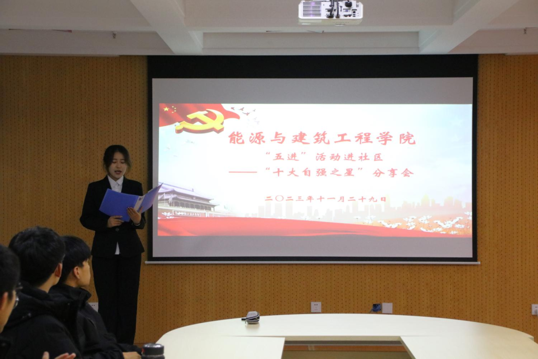 分享会上,表彰了十位“十大自强之星”,并邀请他们分享自己的成长经历和心路历程,以此激励能建学子奋发图强。这些“自强之星”们以朴实无华、真实动人的语言,分享了自己如何克服困难、挑战自我、实现梦想的故事。他们用自己的经历告诉同学们,只要心中有梦想,只要勇敢去追求,就一定能够战胜困难,实现自我。其中,一位同学则分享了自己在面对挫折和困难时,如何调整心态、积极面对的经历。她强调了积极心态和坚持不懈的重要性,让同学们深受启发。