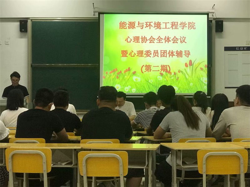 为深入学习贯彻习近平新时代中国特色社会主义思想和党的十九大精神,认真贯彻落实全国和全省高校思想政治工作会议精神,进一步提升大学生心理健康素质,提高大学生心理健康教育工作科学化、规范化、专业化水平,同时为更充分响应和准备学校举办的第四届大学生心理健康节,2018年5月16日,能源与环境工程学院心理协会在心协干部期中会议基础上举行了本次第二次全体会议暨心理委员第二期团体辅导培训。