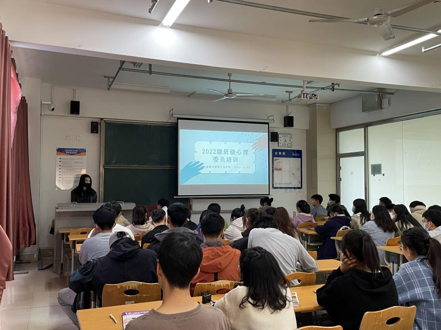 为加强6776永利集团2022级朋辈心理辅导员对班级心理健康工作的重视,提升朋辈心理帮扶能力,我院于2022年11月25日、11月27日召开朋辈心理辅导员培训会。本期培训主题是《阳光校园,健康心灵》,主讲人为学院兼职心理老师胡春卉,2022级全体朋辈心理辅导员参与了此次培训。