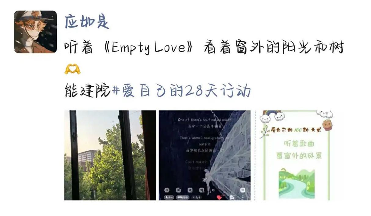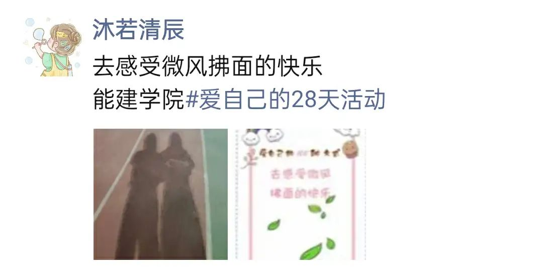 此次活动获得同学们的积极响应,大家每天在微信、QQ等平台上分享打卡记录,收获众多好评和点赞。挑战者们纷纷表示,通过参与活动,他们能够在日复一日地忙碌中时刻记得关爱自己,更加注重聆听内心的声音,发现了身边常被忽视的“小确幸”。