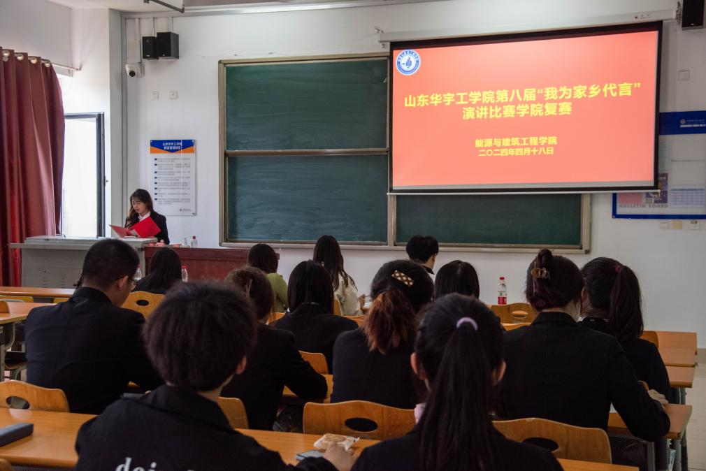 为丰富大学生的文化生活,推进校园精神文明建设,并深植爱国爱乡之情,全面展现当代大学生的综合素质与人文精神,塑造积极向上的精神风貌,同时展现华宇学子的独特风采,我院于2024年4月18日15:00在22号教学楼702室举办山东华宇工学院第八届“我为家乡代言”主题演讲比赛的学院复赛。本次活动邀请卢亚菲、胡春卉、孙明晓、程宏鹏、宿晨洁五位老师担任评委,学生会主席刘璐担任主持人。