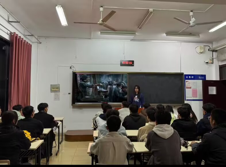 活动期间,各个班级的教室化作红色文化的传播阵地。光影流转间,同学们仿若踏入历史的滚滚洪流。在部分班级中,《铁道游击队》的激昂旋律奏响,游击队员们于铁道线上穿梭如电、奇兵突袭,与日寇展开惊心动魄的周旋,同学们的目光紧紧追随,沉浸在那段热血沸腾的抗争岁月;另有班级沉浸于《闪闪的红星》的光影世界,伴随小英雄潘冬子的脚步,从懵懂孩童逐步成长为坚毅的革命战士,一同经历血与火的淬炼,感悟信仰的磅礴伟力。观影全程,同学们屏气敛息、目不转睛,全身心沉浸于跌宕起伏的情节之中。革命先辈的无畏冲锋、舍己为民,化作一帧帧直抵人心的画面,叩击着灵魂深处。许多同学不禁眼眶泛红,心底涌动着对先烈们无私奉献、为国捐躯壮举的无限敬仰与深沉缅怀。