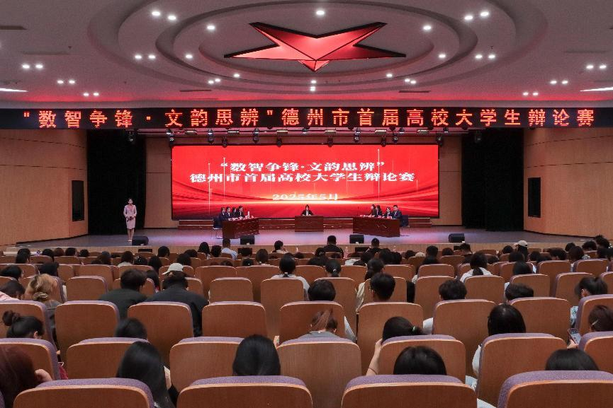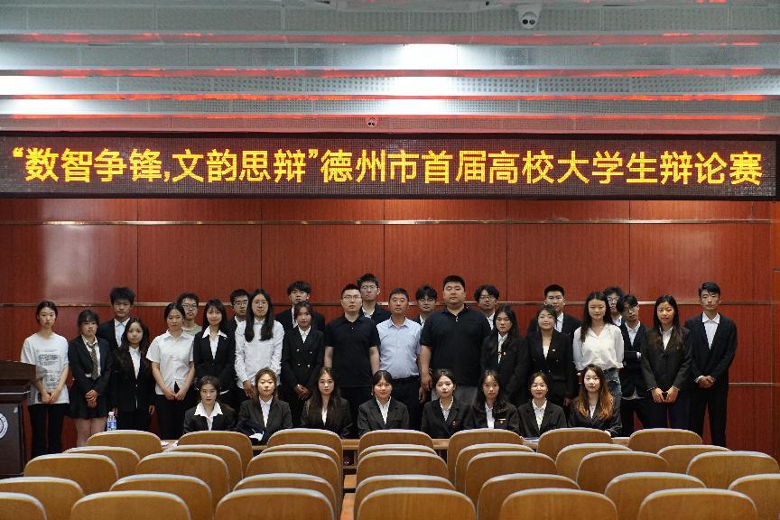 2025年5月18日,“数智争锋 文韵思辨”德州市高校大学生辩论赛在我校大学生活动中心三馆成功举办。德州学院商学院季晓博老师、德州职业技术学院经济管理系秦雪晴老师、德州科技职业学院教育与艺术学院林泽鹏老师担任赛事评委,活动由我校经济管理学院学生管理科科长王俊彬主持。