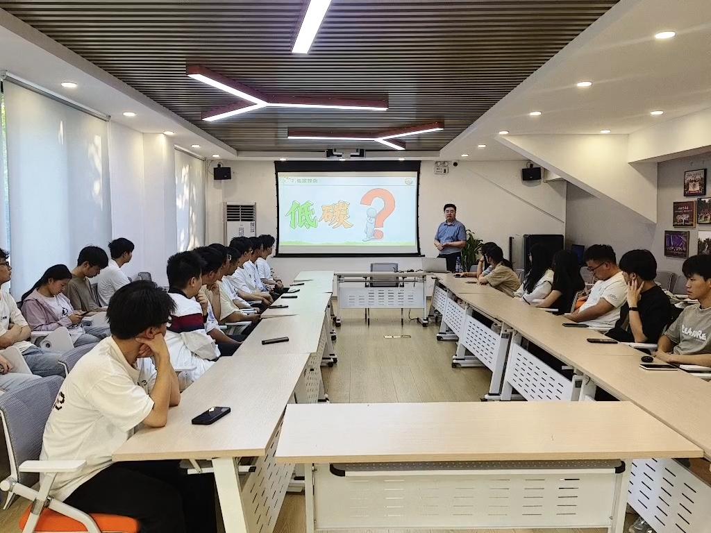 讲座中,郭老师围绕“减碳行动从身边做起”展开深入讲解,从日常生活中的节能节水、绿色出行、垃圾分类,到企业生产环节的技术革新、能源转型,为学生提供了全方位、可操作的低碳实践方案。同时,他呼吁全院师生共同参与,“每个人的一小步,都是绿色未来的一大步”。