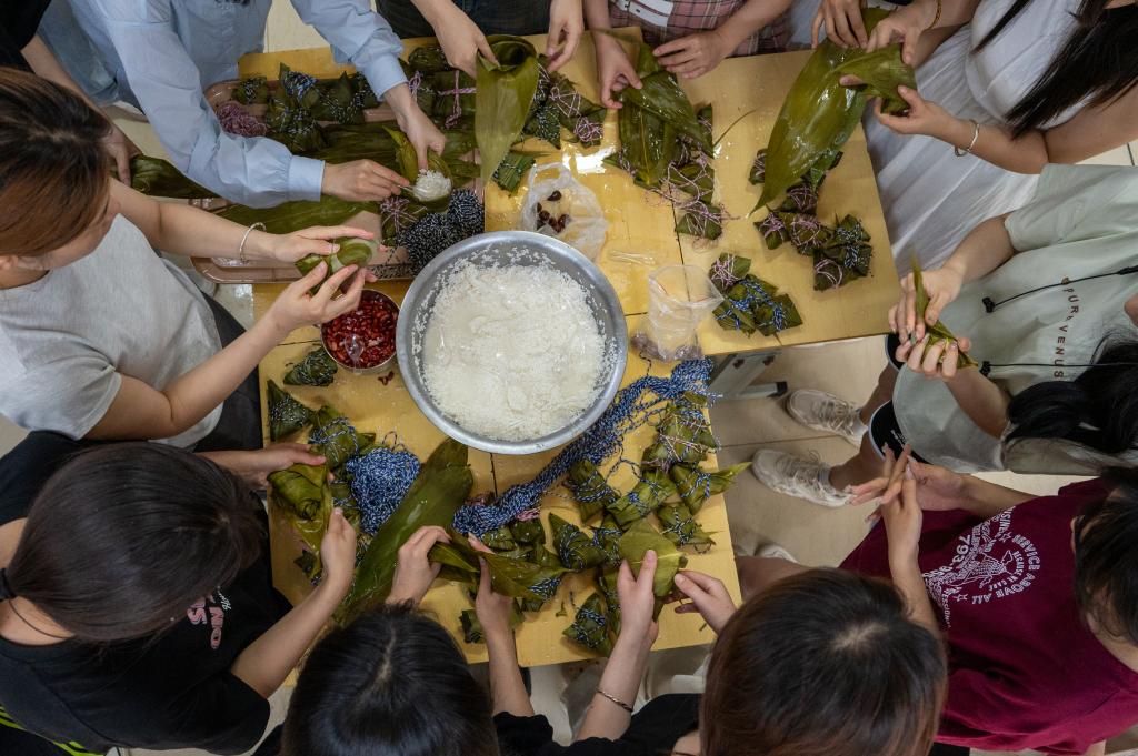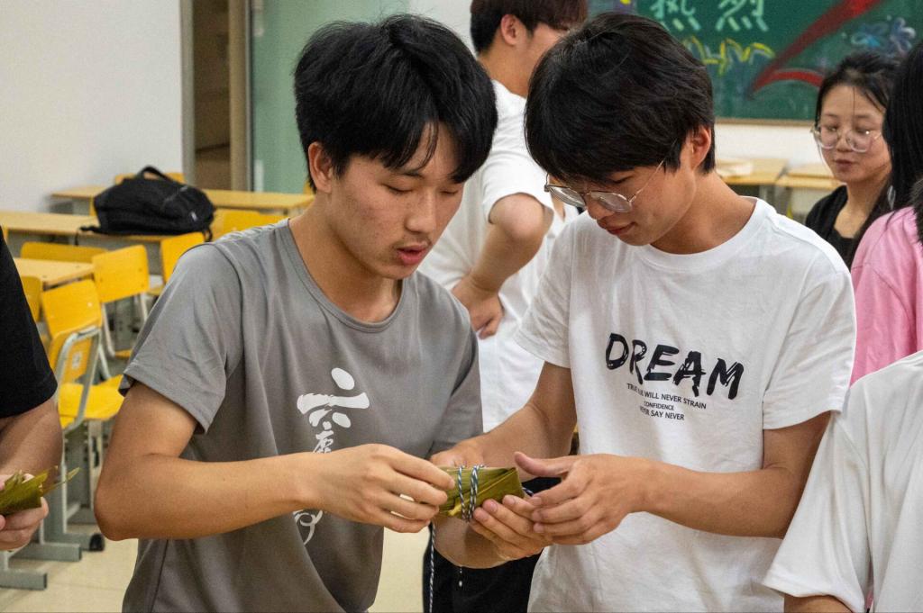 学院与学校餐厅先前达成合作,餐厅热心的阿姨将包好的粽子煮熟后,同学们提着装满粽子的竹篮来到教室,大家有序领取粽子,眼神中充满喜悦与期待。学生们还将精心挑选的粽子送到了老师办公室,师生共同分享劳动成果。