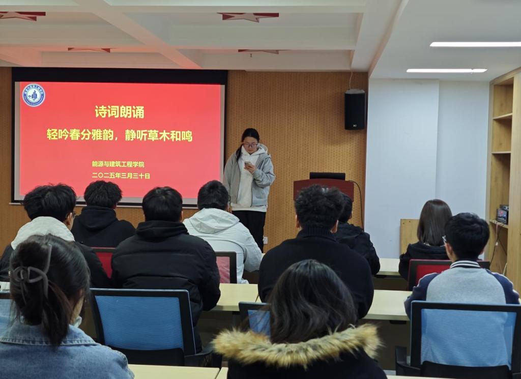 为传播节气文化,提升学生文学鉴赏和情感共鸣能力,激发学生对传统文化的热爱,3月30日下午19:00,6776永利集团养成教育自治委员会,在19号公寓一楼党员活动室,举办以“轻吟春分雅韵,静听草木和鸣”为主题的诗词朗诵活动。