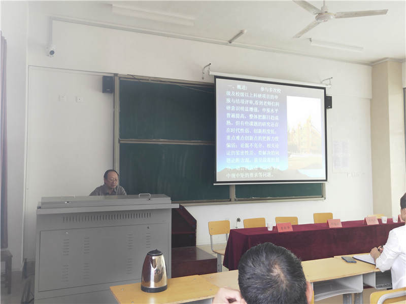 为进一步推进我院课题立项工作,提高课题申报书的撰写质量,熟悉课题具体申报思路,能源与环境工程学院于2019年5月15日下午在21号楼710多媒体教室召开“课题申报参考”专题讲座,讲座由科研处胡俊海教授主讲,科研处李秋华处长、能源与环境工程学院魏丰君院长、相培院长以及全体教师参加。