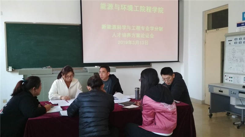 为进一步优化新能源科学与工程专业人才培养方案,推进学分制改革,提高本科人才培养质量,2019年3月13日下午能源学院在16号楼203召开了2019级新能源科学与工程专业人才培养方案论证会,会议由教学院长相培主持,山东建筑大学王强教授、魏丰君院长、实验实训张妍妍主任以及新能源科学与工程专业相关专业教师参加了此次论证会。
