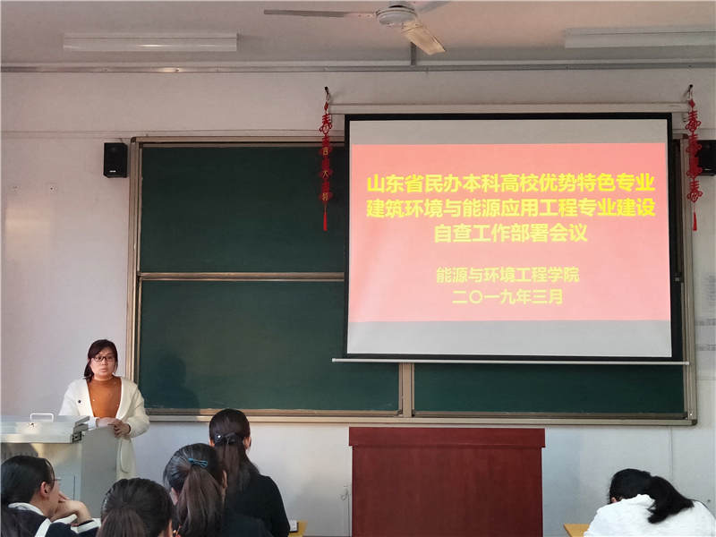 为加强特色专业建设管理,保证特色专业建设质量,迎接优势特色专业合格评估,2019年3月5日我院组织召开建筑环境与能源应用工程省级优势特色专业验收自查工作部署会议,会议在21号楼706室召开。能源与环境工程学院院长魏丰君、教学院长相培、实验实训中心主任张妍妍、教学科长王燕和各教研教师参加了本次会议,会议由教学院长相培主持。