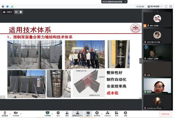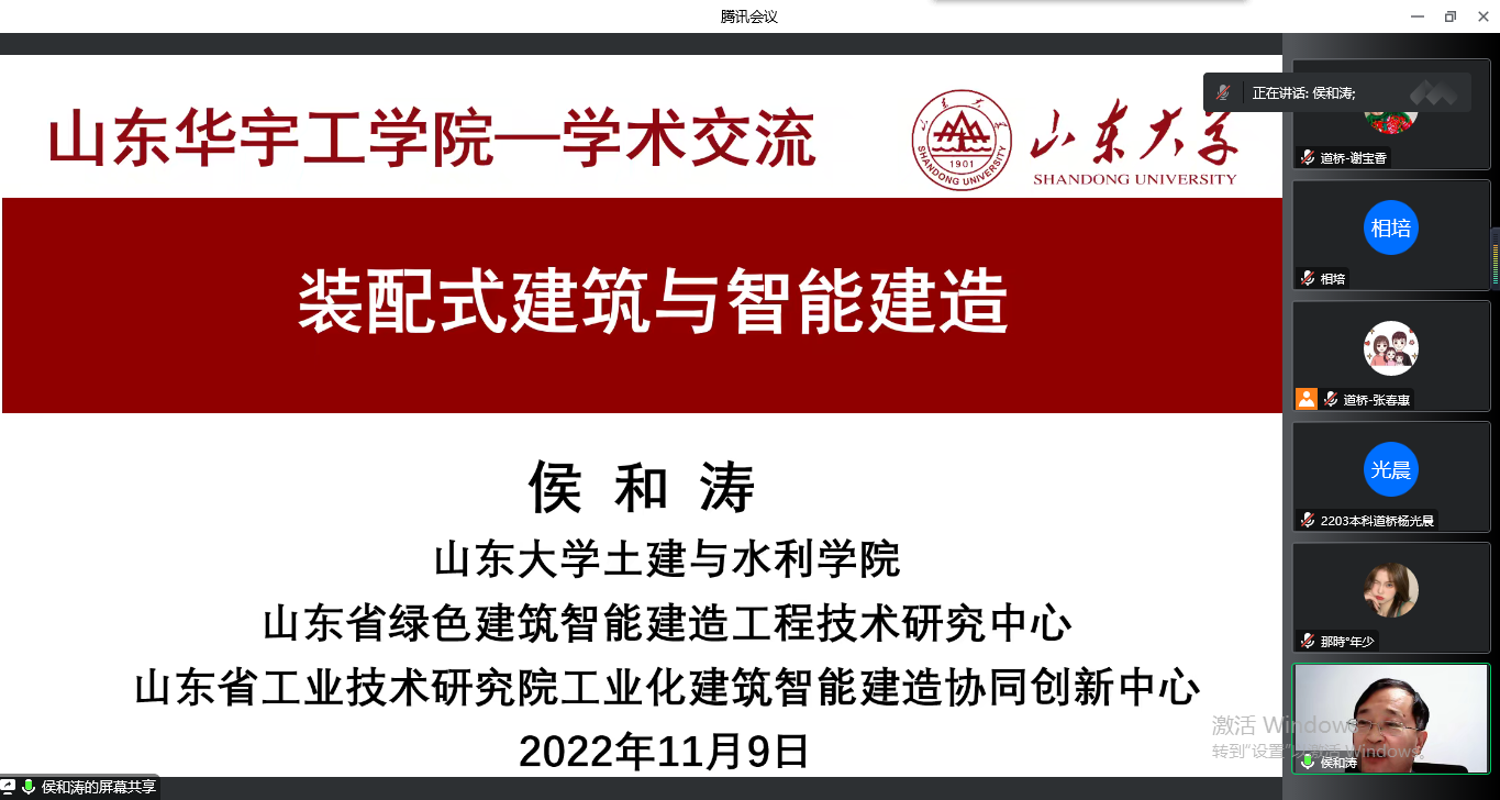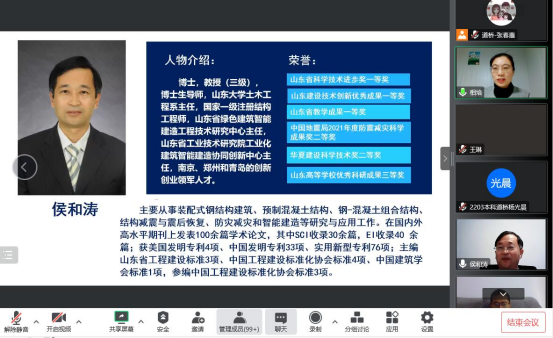 2022年11月9日下午,6776永利集团邀请山东大学博士生导师侯和涛教授,通过线上方式为我院师生作了“装配式建筑适用技术与智能建造”为主题的学术讲座,学院专业负责人、无授课任务教师、学生及其他学院的任课教师共300余人参加,讲座由副院长相培主持。