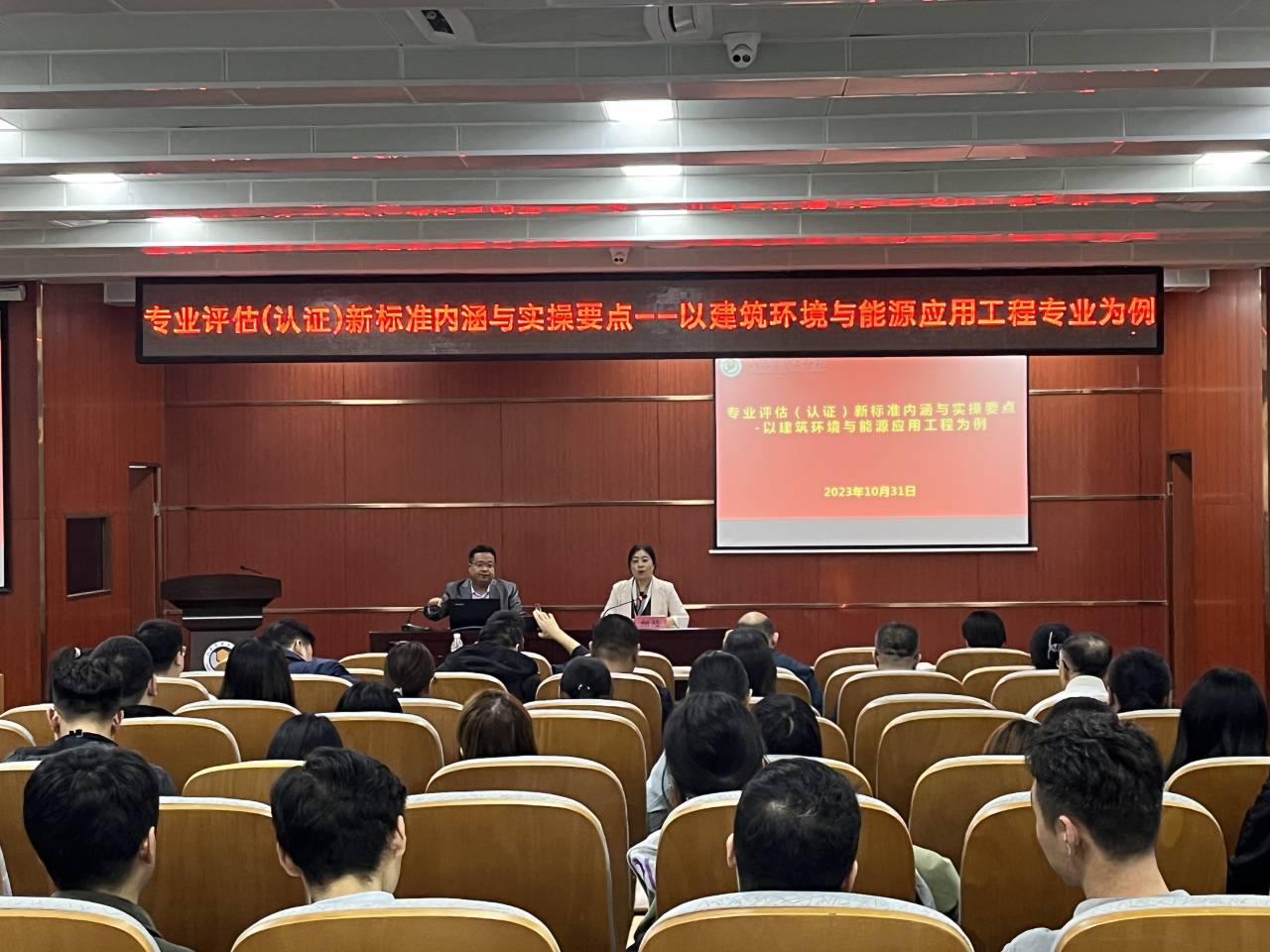 会上,高蓬辉教授从专业认证评估工作发展现状、标准要求、工作要点、实操难点诸方面着手,围绕专业评估认证工作进行了分析和探讨。高教授指出,专业评估工作的目的在于建设,贯彻“以评促建、以评促改、以评促管”的精神,边检查、边总结、边提高,才能切实通过国家标准的检验,才能切实实现专业建设的进步。他强调,新认证标准的首要理念就是围绕OBE教育理念,并从课程体系到教学效果提出了“五个转变”:课程体系要从知识点覆盖型向培养目标和毕业生达成度目标导向转变、教学效果评价要从定性评价向定量+定性的达成度计算方向转变、课堂教学要从灌输课堂向对话课堂转变、培养模式从知识课堂向综合能力提升转变、教学环节要从重教轻学向教主于学转变。高教授还以中国矿业大学建筑环境与能源应用工程专业的评估认证工作为例,详尽阐述了在开展专业认证的实操工作时亟需关注的种种重点和难点,分享了宝贵的经验和教训。最后,参会人员与高教授进行了充分地交流和讨论,高教授分别做了详细解答,并针对学校、学院的专业建设发展情况提出了建议。
