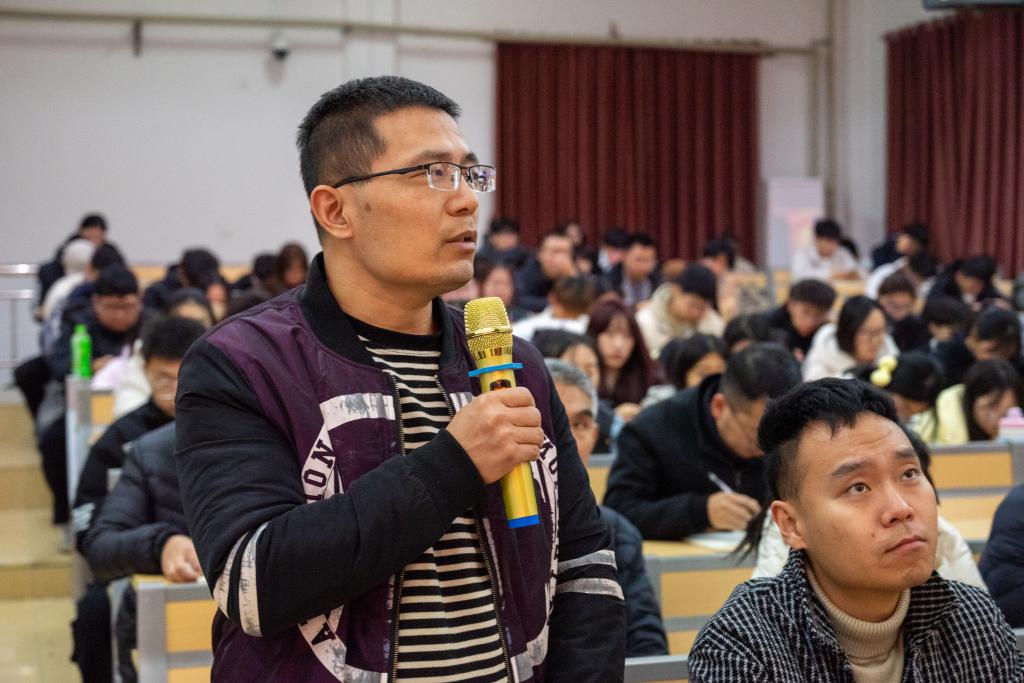 最后,院长助理车建成结合学生反馈与教师答疑情况作总结讲话。他围绕教学观察技巧、师生沟通策略与问题分析方法展开讲解,指出教学信息员是教学一线的“观察员”和“质检员”,肩负反馈真实信息的重要使命。他鼓励信息员以“真实、真干、真思考”的态度,客观反映教学亮点与不足,积极建言献策,成为推动教学质量提升的生力军。