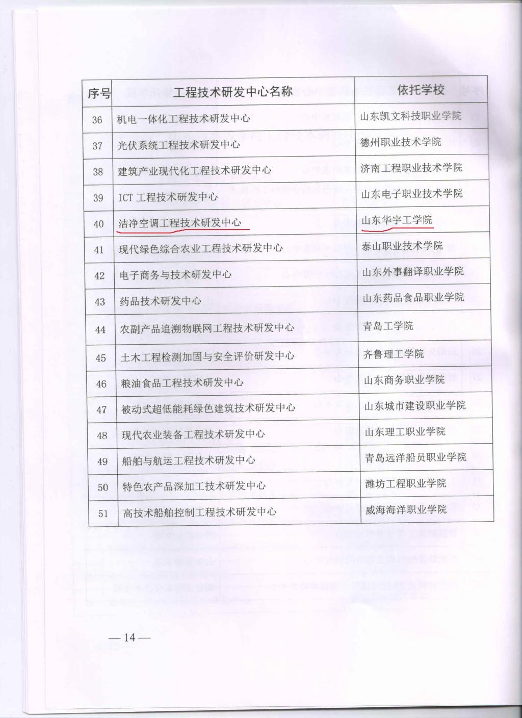学院与德州亚太集团有限公司深入合作,优势互补,于2013年成立洁净空调工程技术研发中心,经过几年的发展建设,中心科研水平不断提高,2017年4月,该中心被山东省教育厅批准为省级洁净空调工程技术研发中心。